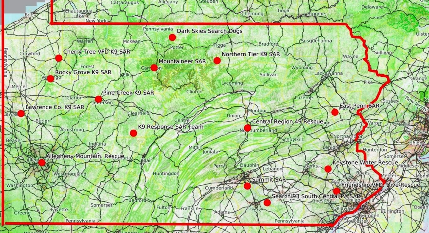 Pennsylvania Search & Rescue Team Map